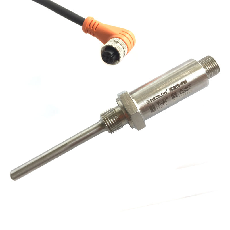 該溫度變送器產(chǎn)品的探頭及外殼采用316L不銹鋼,結構采用激光焊接工藝,連接線采用IP65防水航插出線,極大的保證產(chǎn)品的長期穩(wěn)定型和可靠性。