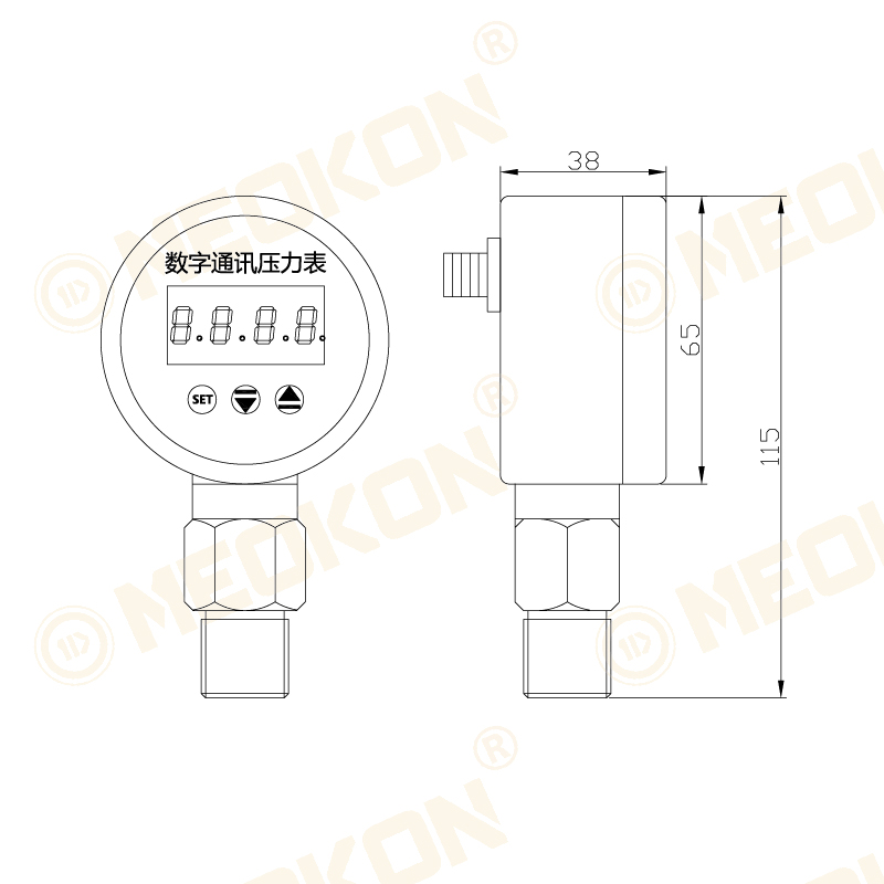 該款數字遠傳壓力表采用四位數顯,可現場實時壓力,同時壓力信號可遠傳,傳輸距離優于500米。內置壓力傳感器,功能強大,用戶可自行更換壓力單位、校準零位誤差、修正濾波常數等。